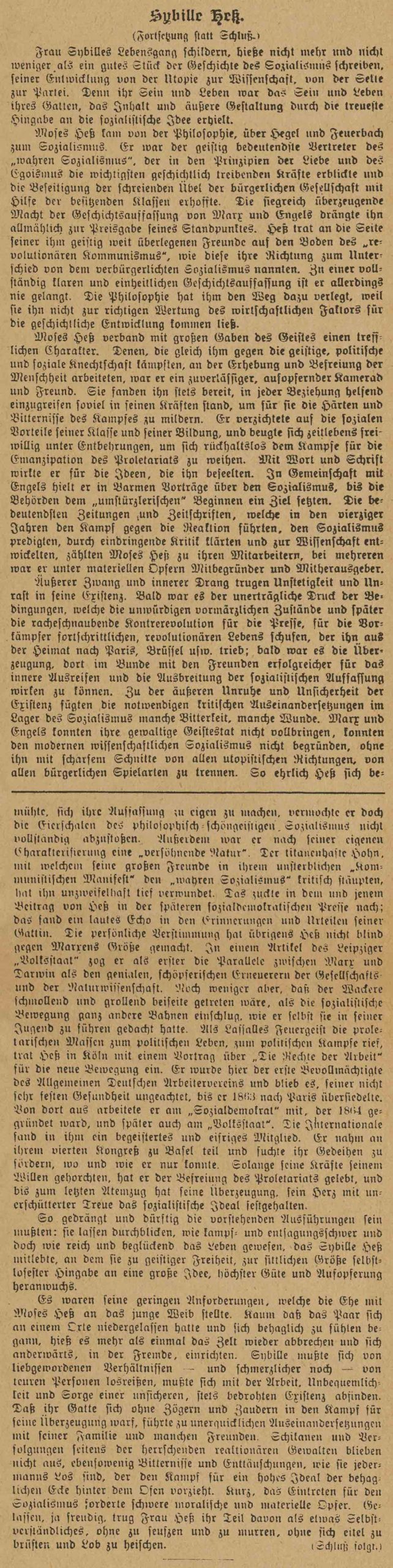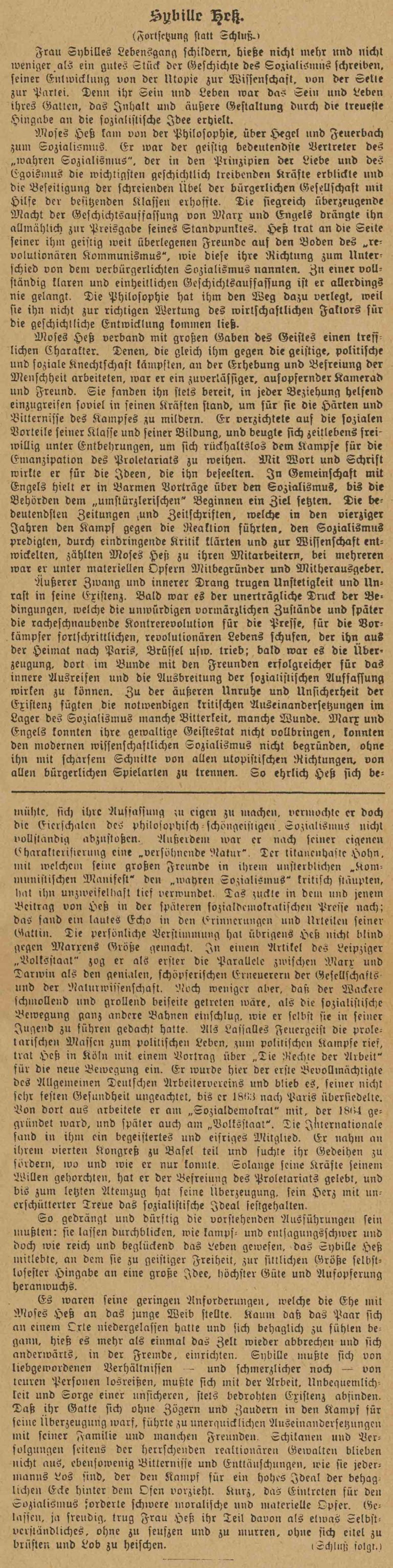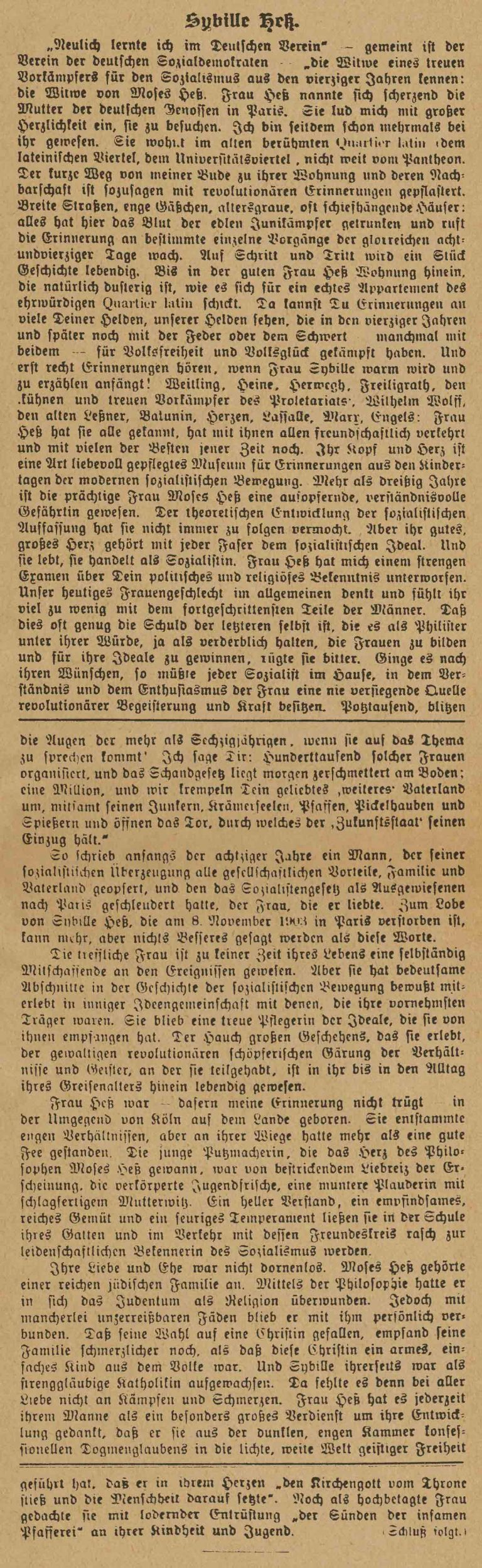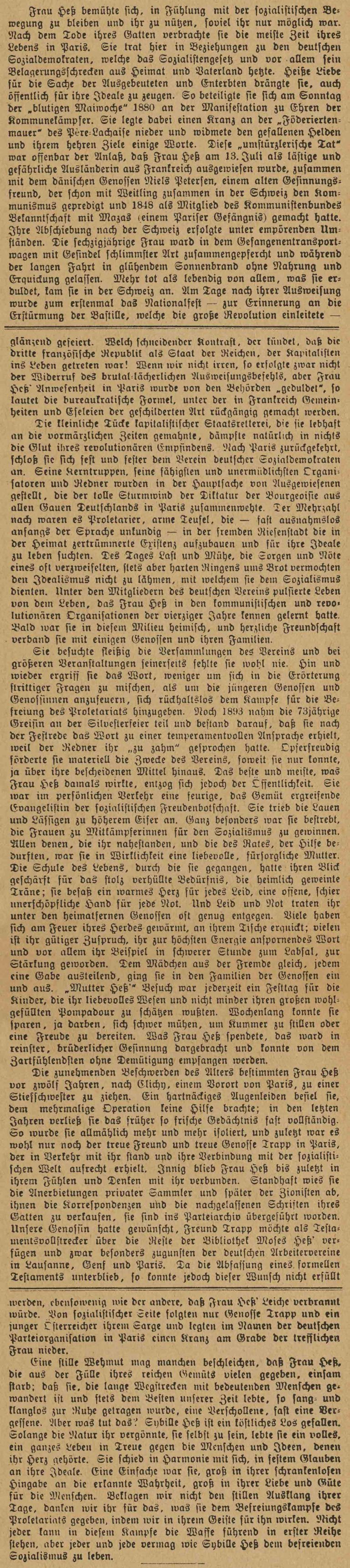 Her Life Ihr Leben Sibylle Pesch Socialist, Publisher and Manager of Hess`s legacy Born 1820 in Schmidtheim, Eifel, deceased 1903 in Paris Sozialistin, Publizistin und Verwalterin von Hess Erbe Geboren 1820 in Schmidtheim, Eifel, gestorben 1903 in Paris Clara Zetkin über das Leben von Sybille Hess (geb. Pesch) in "Die Gleichheit", 1904 Clara Zetkin über Sybille Hess - Die Gleichheit 1904 PDF-Datei wird in einem neuen Fenster geöffnet (262KB) → Clara Zetkin über Sybille Hess - Die Gleichheit 1904 odt-Datei, maschinenlesbar, automatischer Download (123KB) → Porträt von Sybille Hess